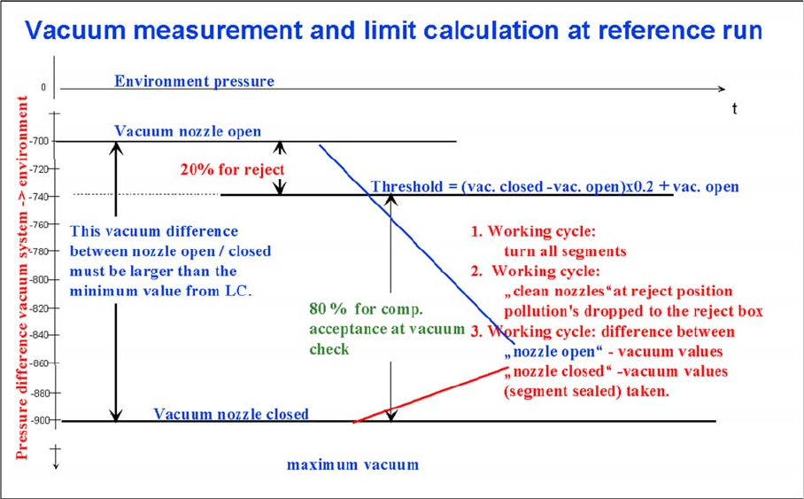 ▪ The vacuum is measured twice at the reference point: first with open and then with closed nozzle