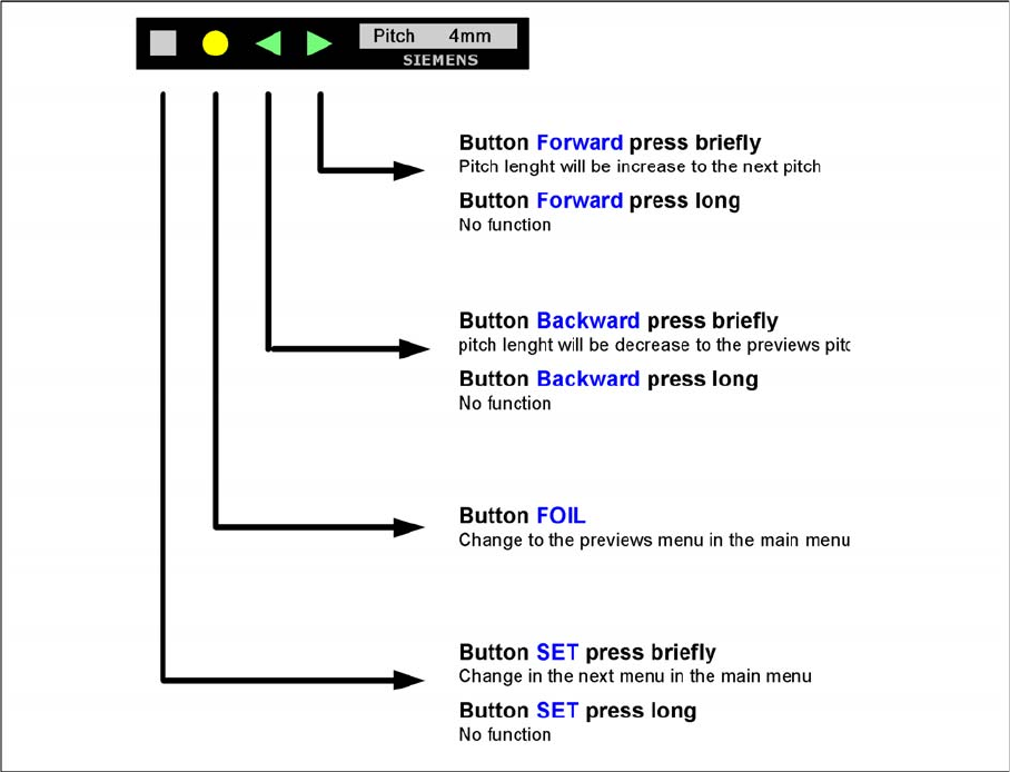 Component Handling X Feeder Oper ation 365 Student Guide SIPLACE X-Serie and X4I SW70x (AL2) Menu Pitch in t he Main Menu 10.2.7.11 Menu Pitch in the Main Menu Setting the transport length
