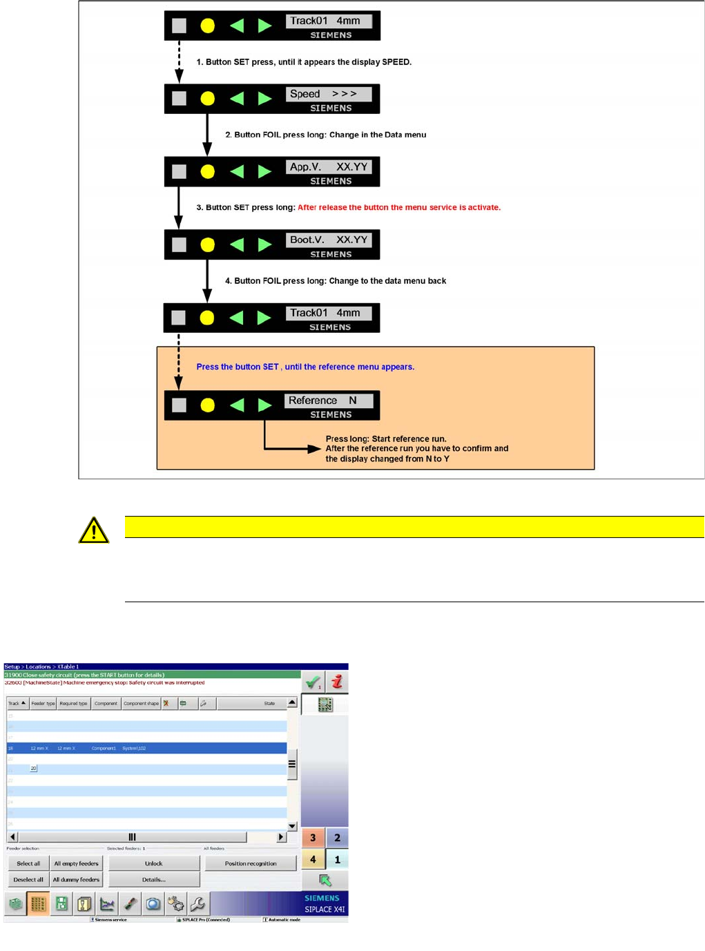 Component Handling Operation X Feeder Student Guide SIPLACE X-Serie and X4I SW70x (AL2) 368 Service menu for re ference r un Feeder Setti ngs at the Stat ion 10.2.7.15 Feeder Settings at the Station CAUTION During the re…
