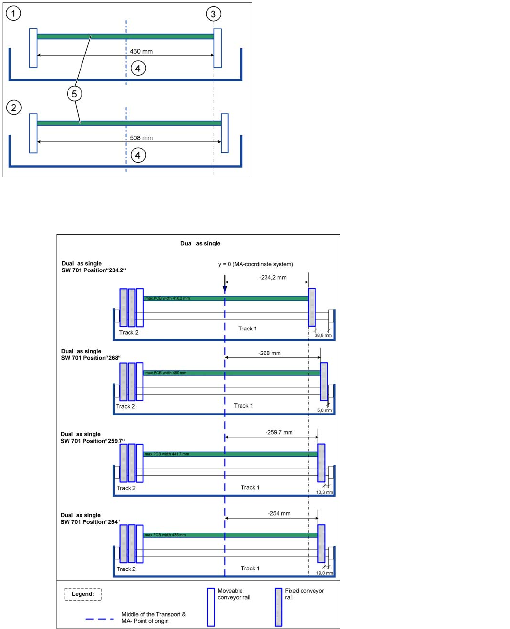 Modular Conveyor Conveyor Modes Function Description Student Guide SIPLACE X-Serie and X4I SW70x (AL2) 386 See also 11.3.2 Setting the Fixed Convey or Edge (from SW701 ) [ ➙ 391] Overview of D ual Conveyor with Right o…