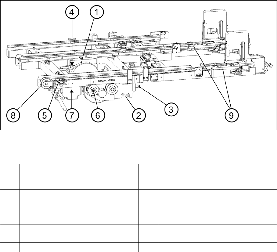 1 Feed axis, tower 1 5 Toothed belt