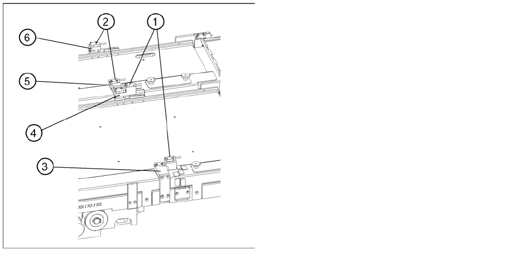 ► Place the adjustment gauge for the crash light barriers across the rail of the feed axis for tower 2.
