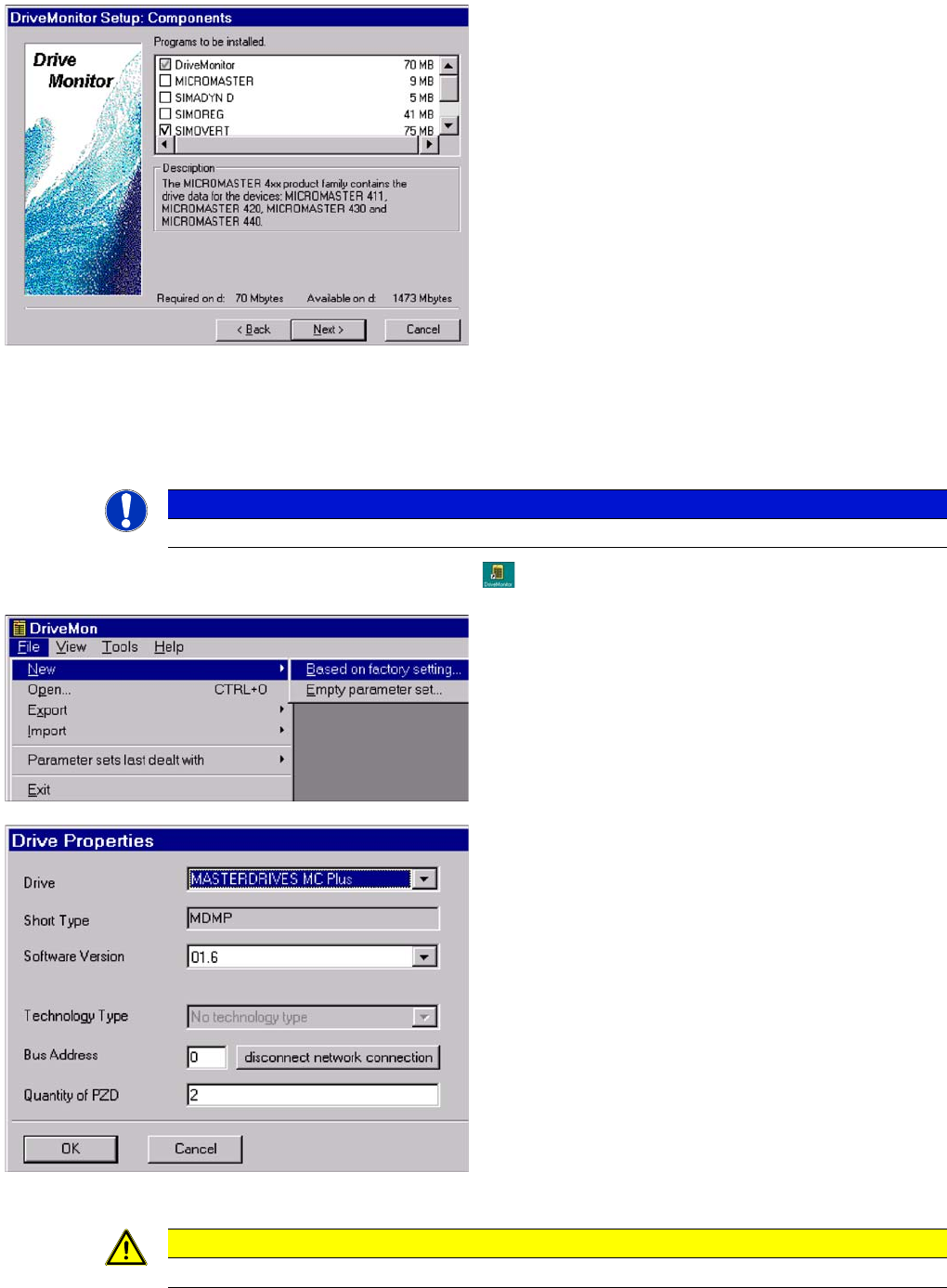 ► Select the Drive and the operating software for the drive.