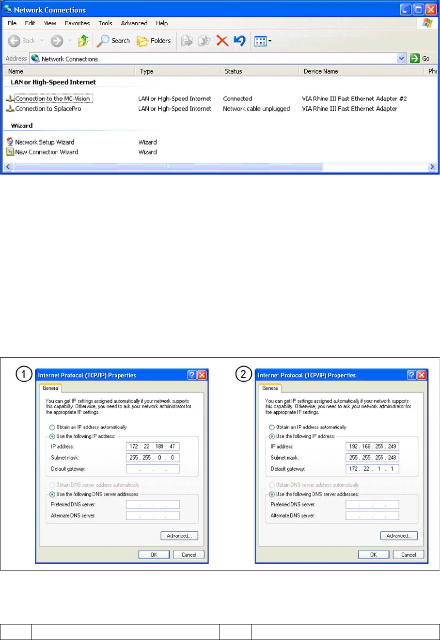 connection of the dual LAN unit in the station computer. The network address is not fixed and can be