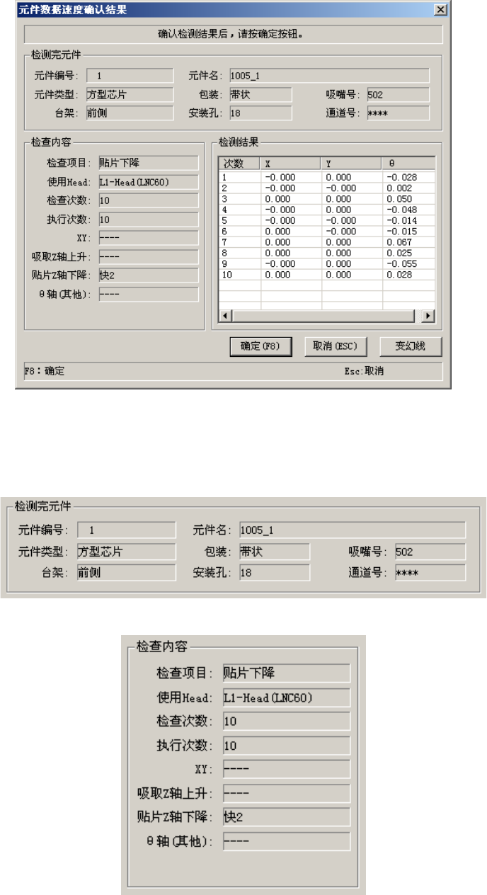 确认速度时出现下列对话框,显示正在确认速度的元件内容及吸取位置。逐项地实时显