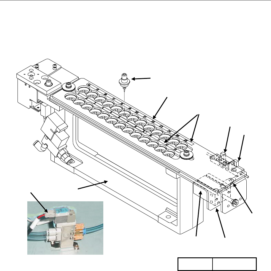 第 1 章 设备概要 1-4-1-4 ATC 单元( Auto Tool Changer 自动工具交换装置)的构成 由气缸④来开、关滑动板②,保管并装卸吸嘴⑧。 滑动板②的开、关,由 ATC OPEN (打开)传感器⑥、 ATC CLOSE (关闭)传感器⑦来检测, 开、关的速度由速度控器⑤来调整。 图 1-4-1- 8 ATC 单元 ① ATC 基座 ⑥ ATC OPEN 传感器 ② 滑动板 ⑦ ATC CLOSE 传感器 ③ ATC…