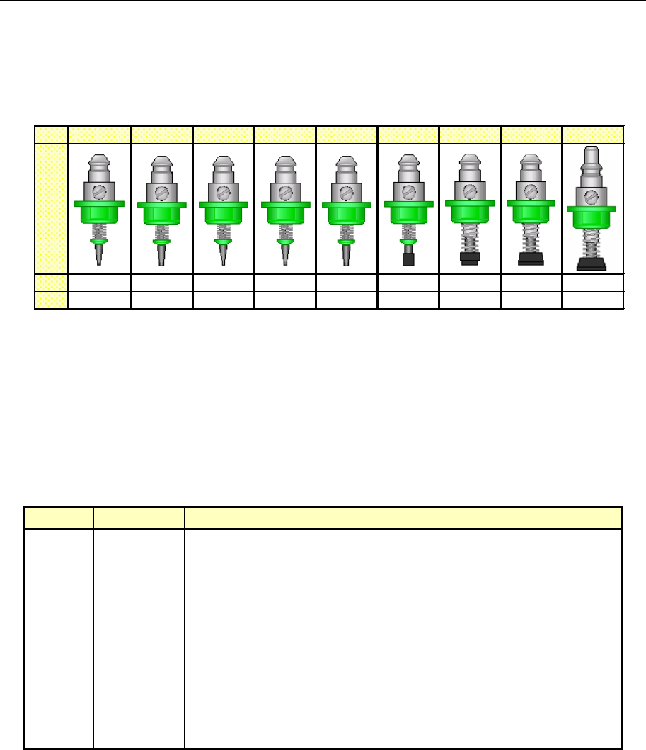 表 1-4-1-2 吸嘴 No.和最小宽度对照表