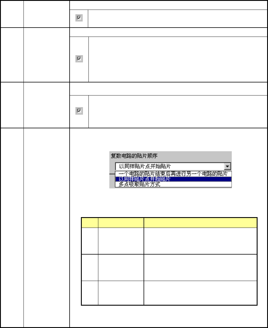 表 4-1-2-3-2 多电路的贴片顺序的选项及概要