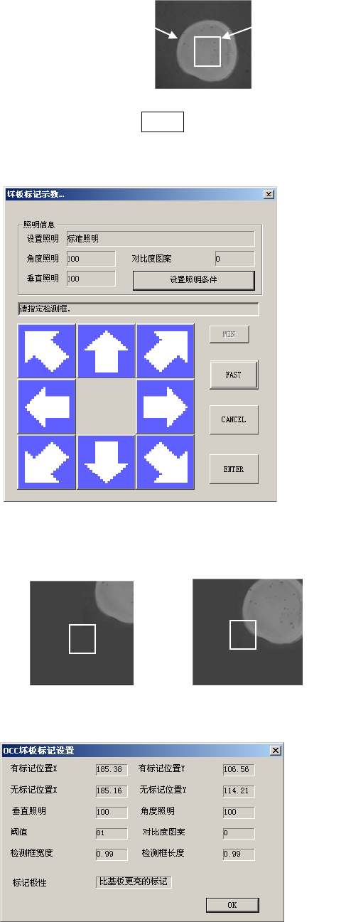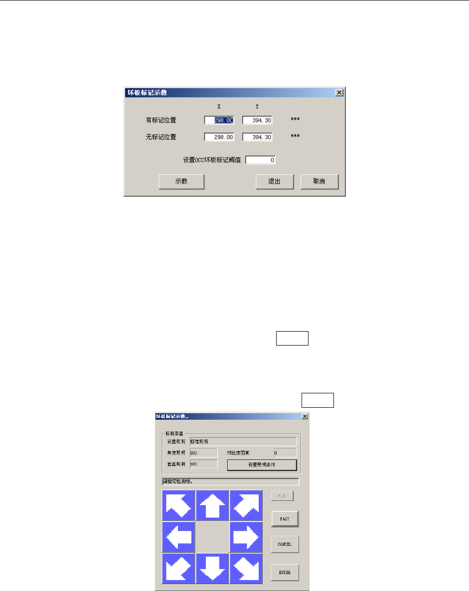把光标对准设置 OCC 坏板标记阈值的编辑框,按下 HOD CAMERA 键或按下示教按钮开始示教