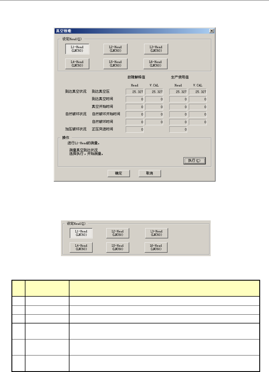 ① 设定Head将移动到真空校准上,测量3次真空到达状况。
