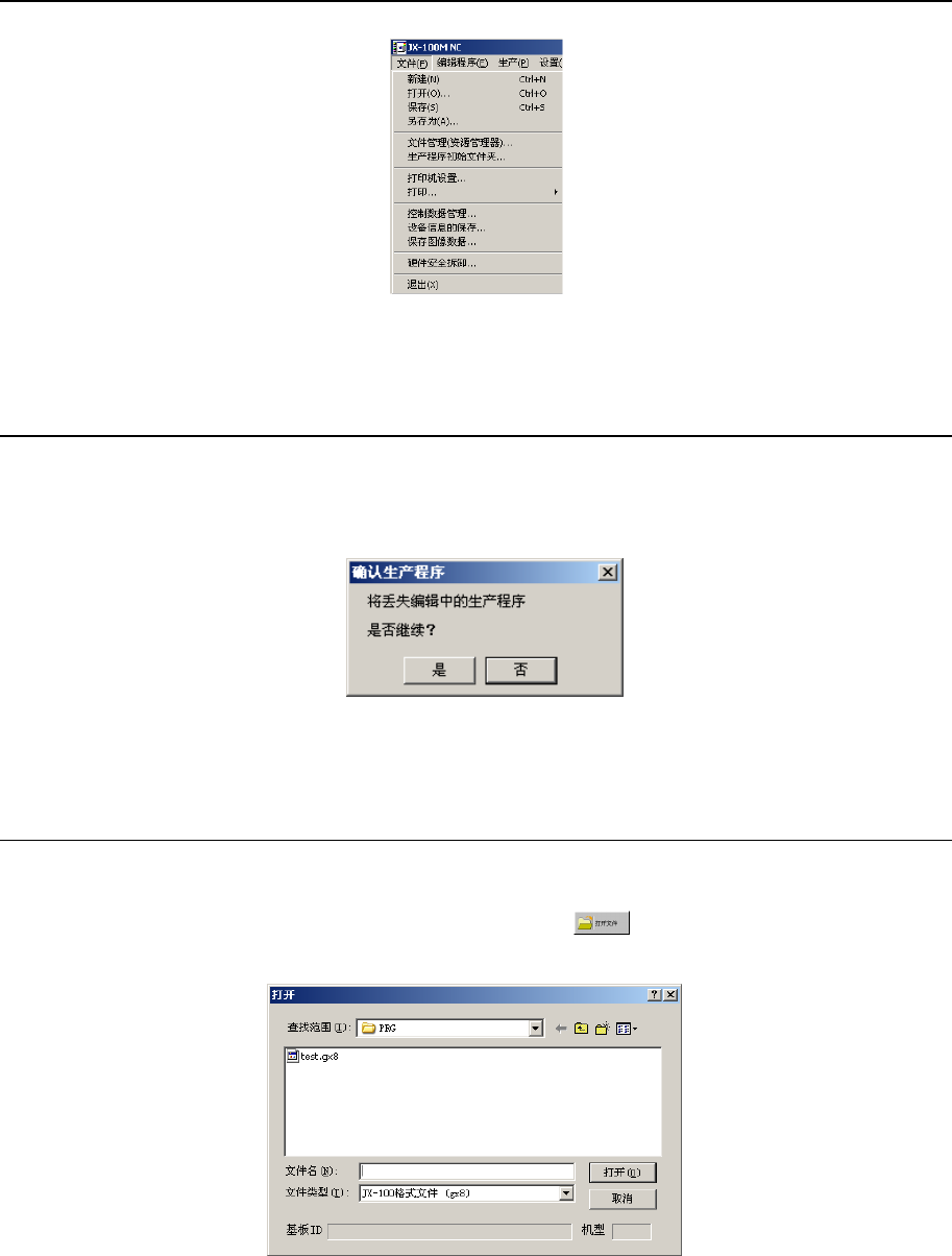 如有未保存的生产程序时显示询问信息。(参见1-7-1 新建)