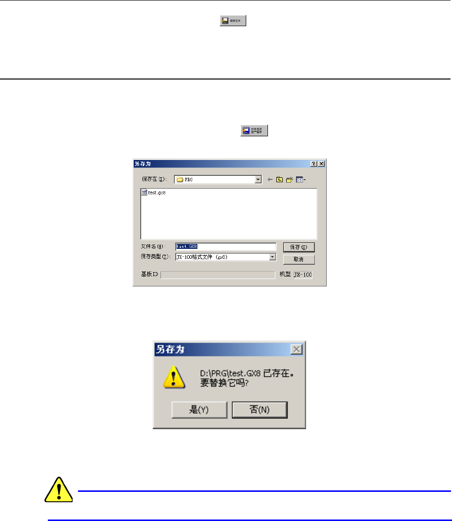 第 1 章 设备概要 ● 程序名称 程序名称为保存在记忆装 置中的文件名。因此 , 程 序名称可采用 Windows 允许使用的文件 名。但扩展名会因机种不同而被自动添加。另外 , 不能更改扩展名。 ※ UNTITLED 名为 UNTITLED 的程序名, 是启动程序编辑时自动预置的缺省名。 从菜单中选择新建时 , 将 自动初始化为该名。 保存 UNTITLED 时 , 显示“另存为”画面。此时请命名。 ● 扩展名 为了指定文件的形式 …