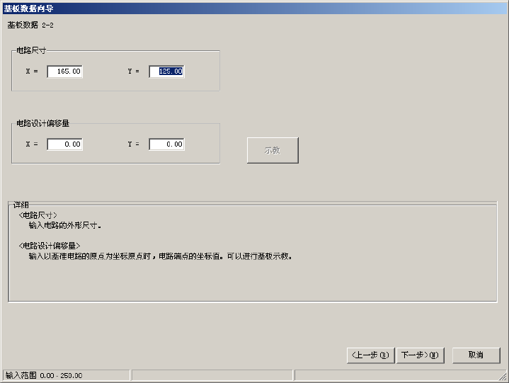 在这里对“电路(外形)尺寸”、“电路设计偏移量”进行设置。