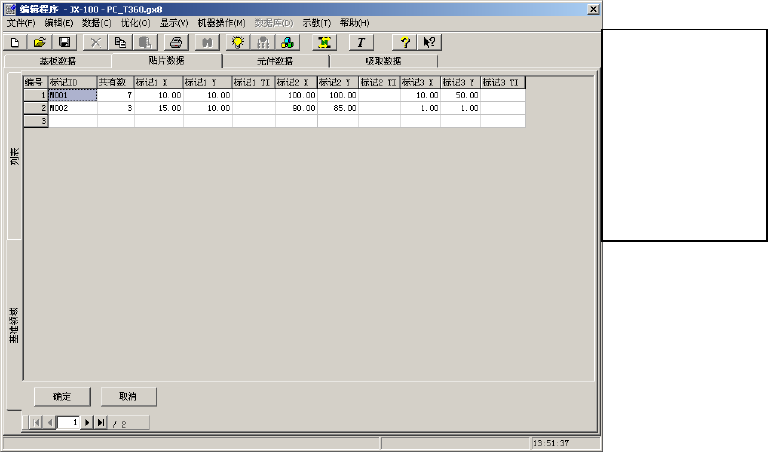·确定 保存已编辑的数据,返回贴片列表画面。此时标记群组不被选择。