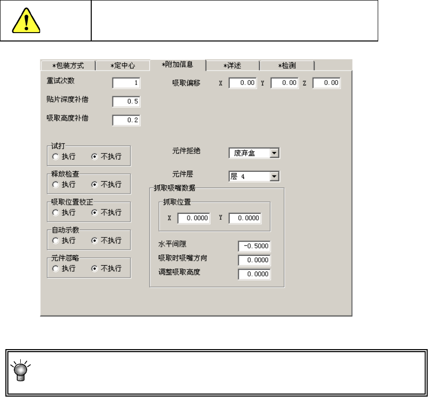 当设置为“0”时,因基板平面度的影响,会发生在元件未到达基板时被贴片,导致贴片偏差,