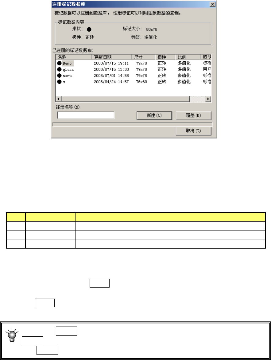 要把示教数据注册到标记数据库时,请输入注册名称,然后按下<新建>按钮。