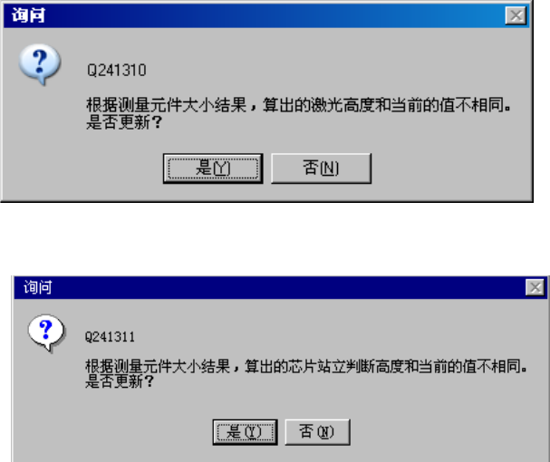 根据尺寸计算出的激光高度或芯片站立判定高度与原来的值不同时,显示如下询问。