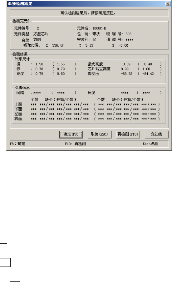 在单独检测过程中,显示如下画面。显示正在进行单独检测的元件的内容及吸取位置,并