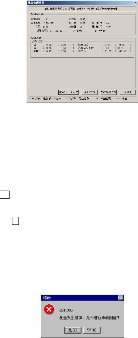 因某种原因在检测中发生错误时,显示如下信息。选择“是”,可转入单独检测模式。