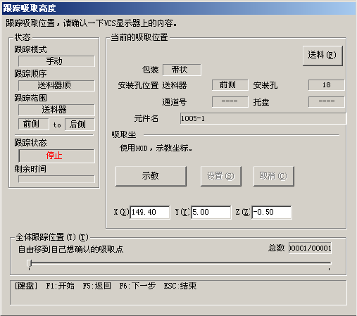 从菜单栏中选择“机器操作”/“确认”/“坐标类”/“吸取高度”,显示如下画面。