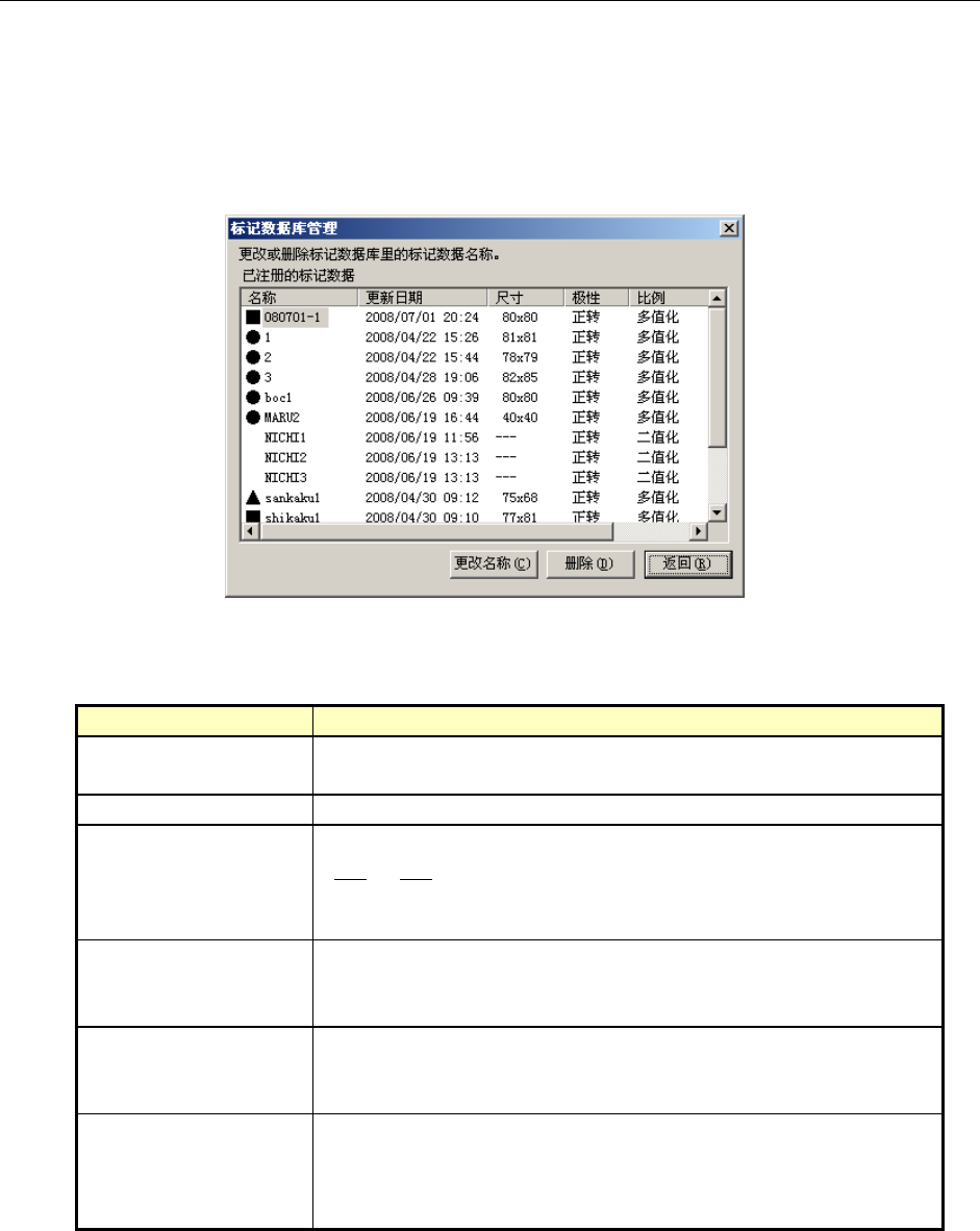 对标记数据示教时所注册的标记数据的数据库文件,进行各种管理。