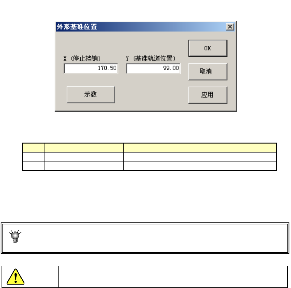 选择外形基准位置后,显示如下外形基准位置的设置画面。