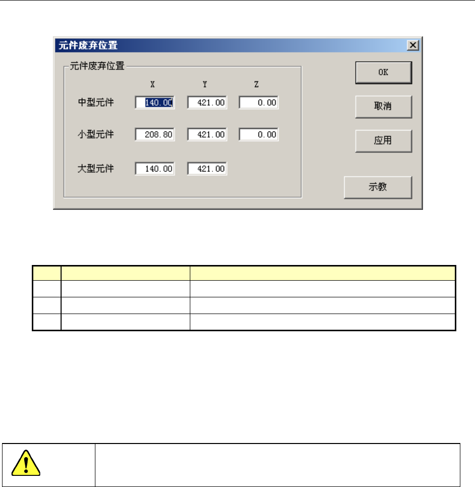选择元件废弃位置后,将显示如下元件废弃位置设置画面。
