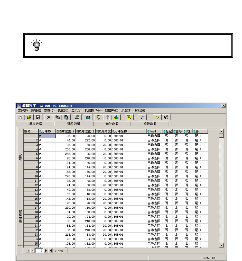 输入与贴片元件的贴片坐标有关的信息。