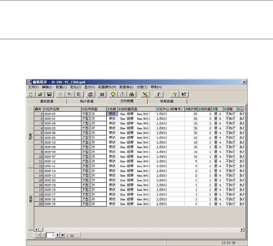 “元件数据”是对在“贴片数据”输入的“元件名称”,输入有关的详细信息数据。