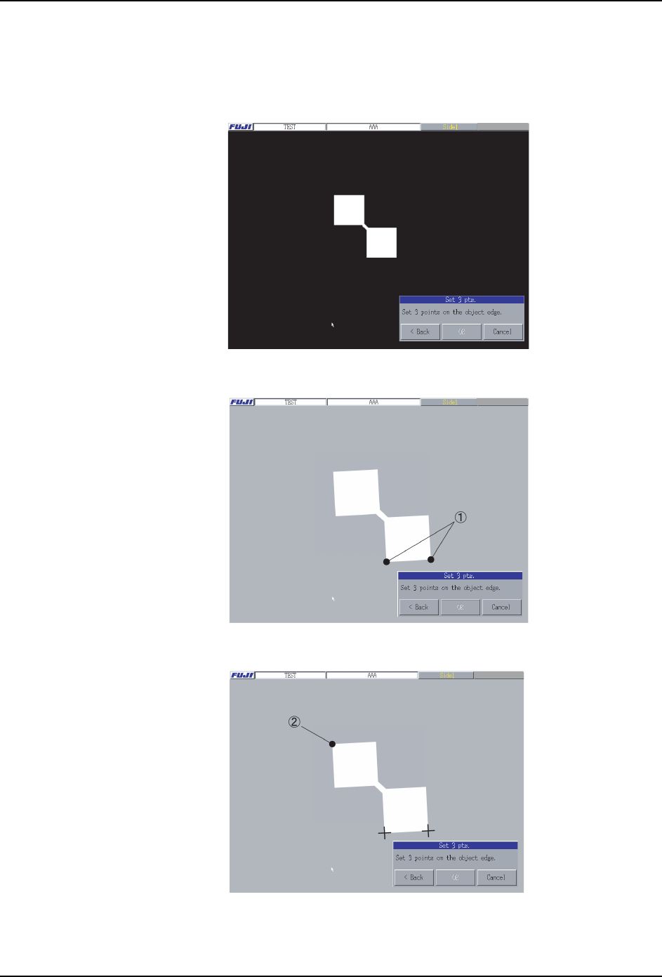 按下 [3 点指定]按键后,显示出 [3 点指定]校正尺模式的对话框。