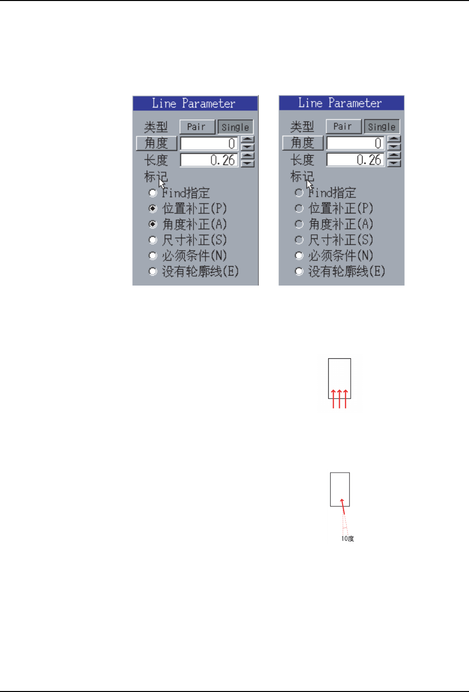 在 [Line Parameter] 对话框中,如下有 [ 定位用 ] 和 [ 检验用 ],能设定的项目不同。