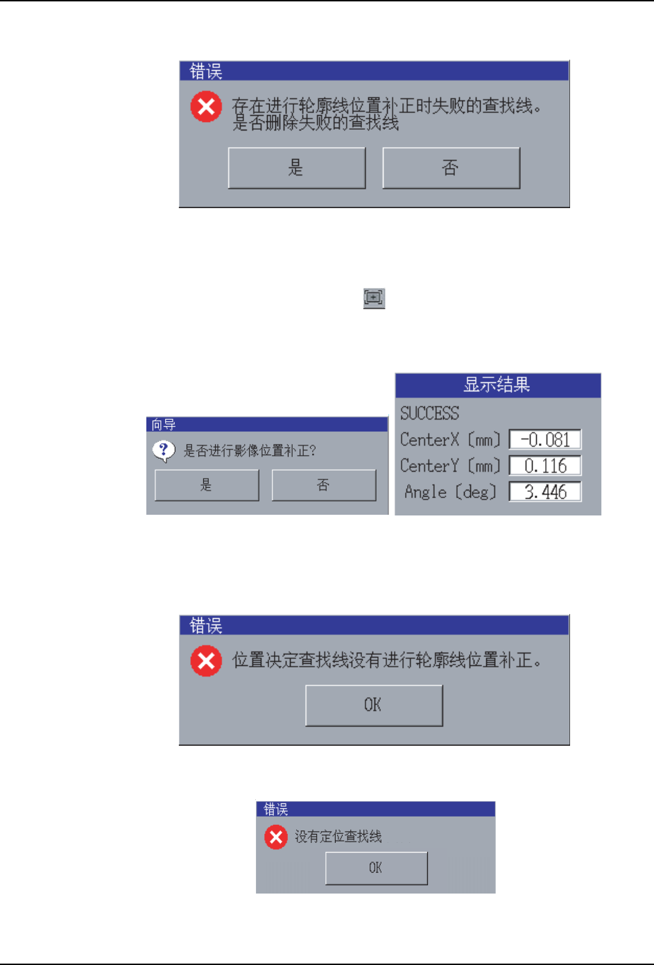 e. 选择 [ 是 ] 按键时,消去轮廓位置补正失败的查找线。