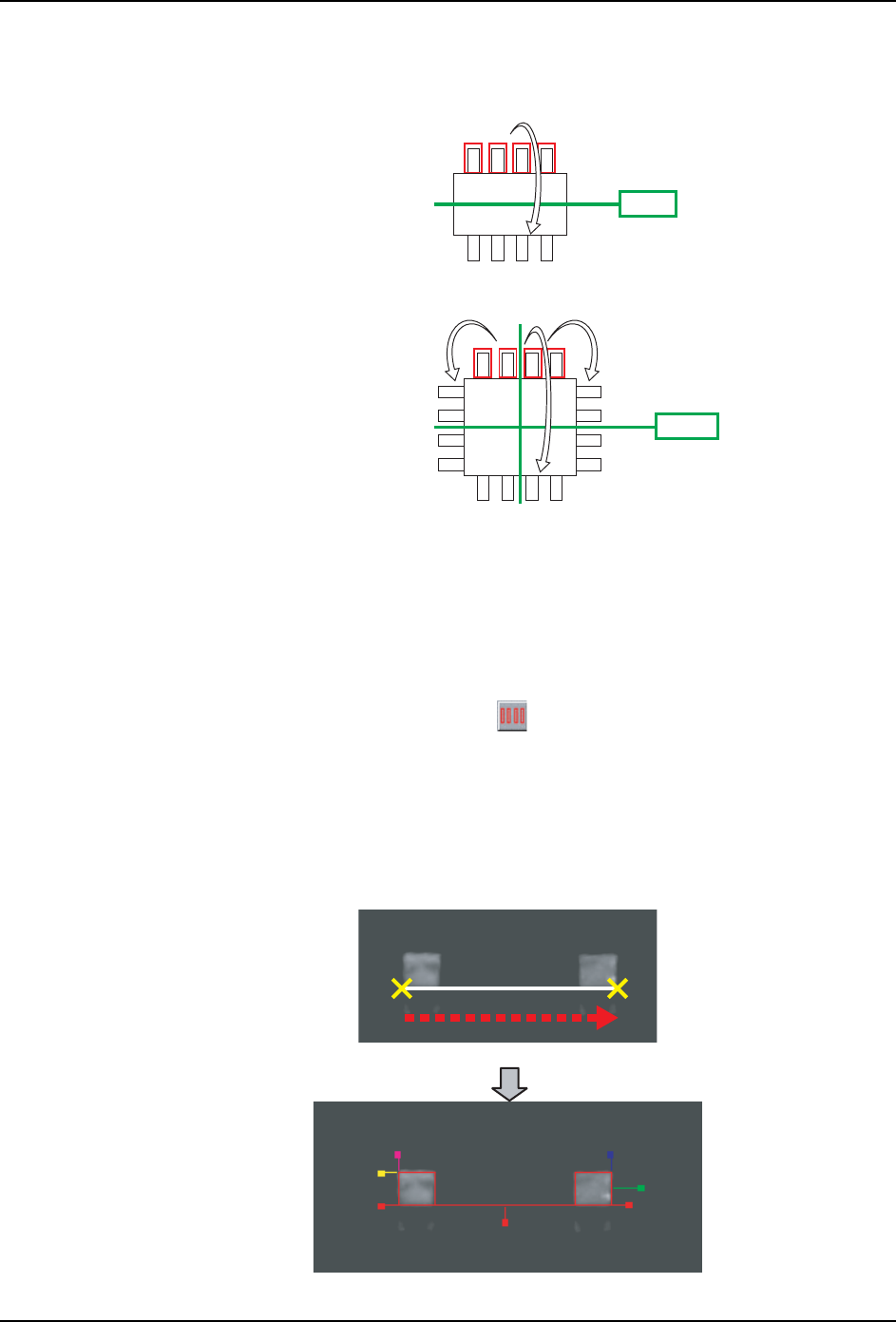 PRG-XPF-1.0S 5. PDW XPF 编程手册 161 b. 编辑要素时 请单击编辑的要素。 单击后在要素中显示出要 素摇柄, 在 [ 引脚要素 ] 对话框里显示 出各个数值。 3. 和元件影像的引脚要素保持一致 。 操作要素的要素摇柄,请与元件 影像的引脚对齐。 4. 用 [ 引脚要素 ] 对话框编辑。 ①要素的移动 (红色的手柄) 拖动手柄可以向要素的 X,Y 方向移动。 表示 Y 方向的基准线。 ②要素的移动 (红色的手…