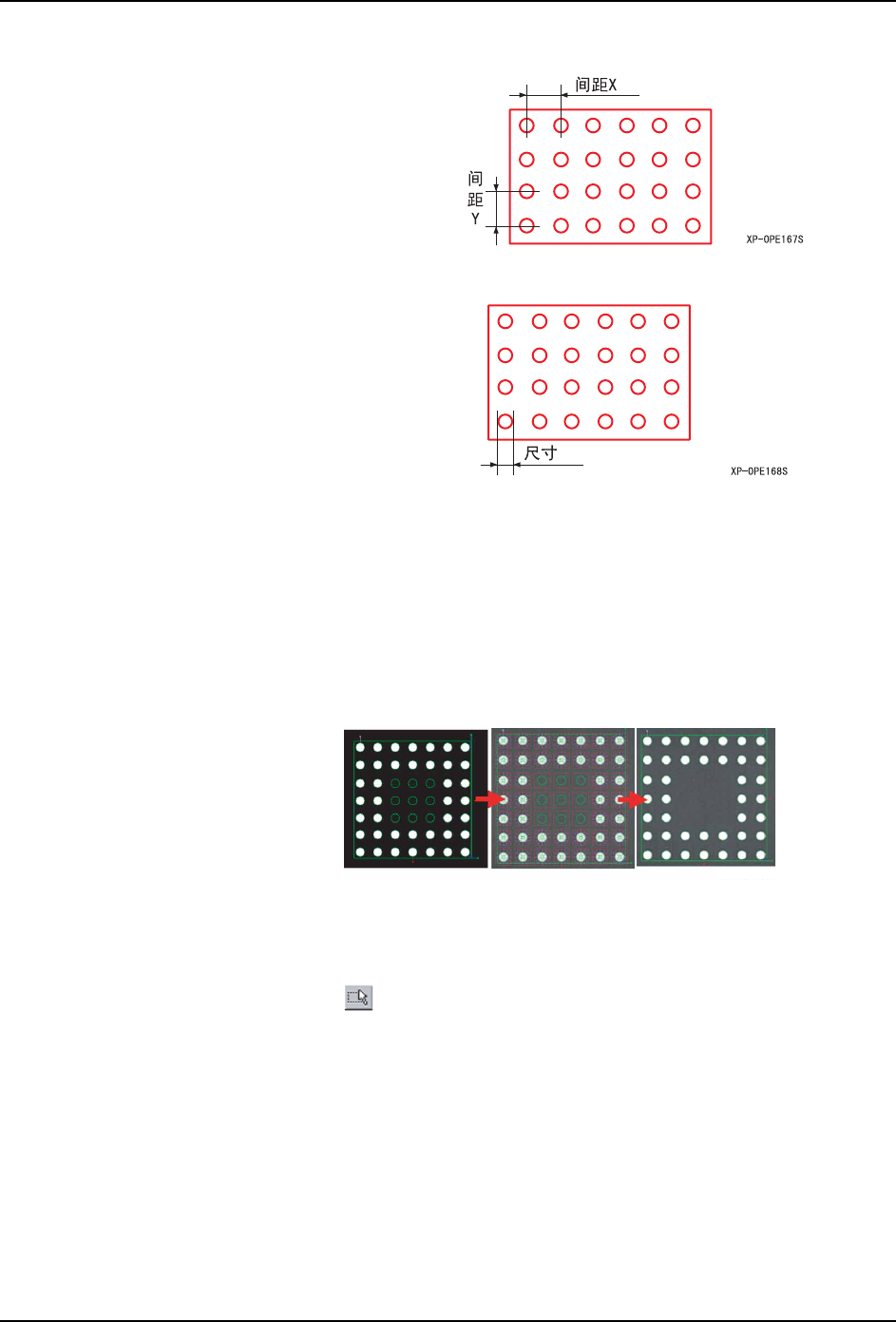 PRG-XPF-1.0S 5. PDW XPF 编程手册 185 间距 X/ 间距 Y: 输 入锡球的间隔。 (0.000 ~ 99.999mm) 尺寸: 输入锡 球的直径。 (0 .000 ~ 99. 999mm) [}] 按键 : 进行 设定的要素的影像处理,一次性处理 要素中心位置·引脚间 距·引脚宽度并显示数值。 位置公差: 设定要素的中心位置 的公差。 (0.0 01 ~ 99.99 9) 尺寸公差 : 设定锡球尺寸 的公差。…