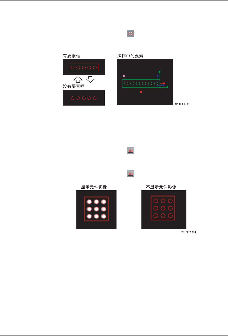 1. 按下以下按键,消去编辑中的元件影像显示。 离开以下按键时,显示编辑中的元件影