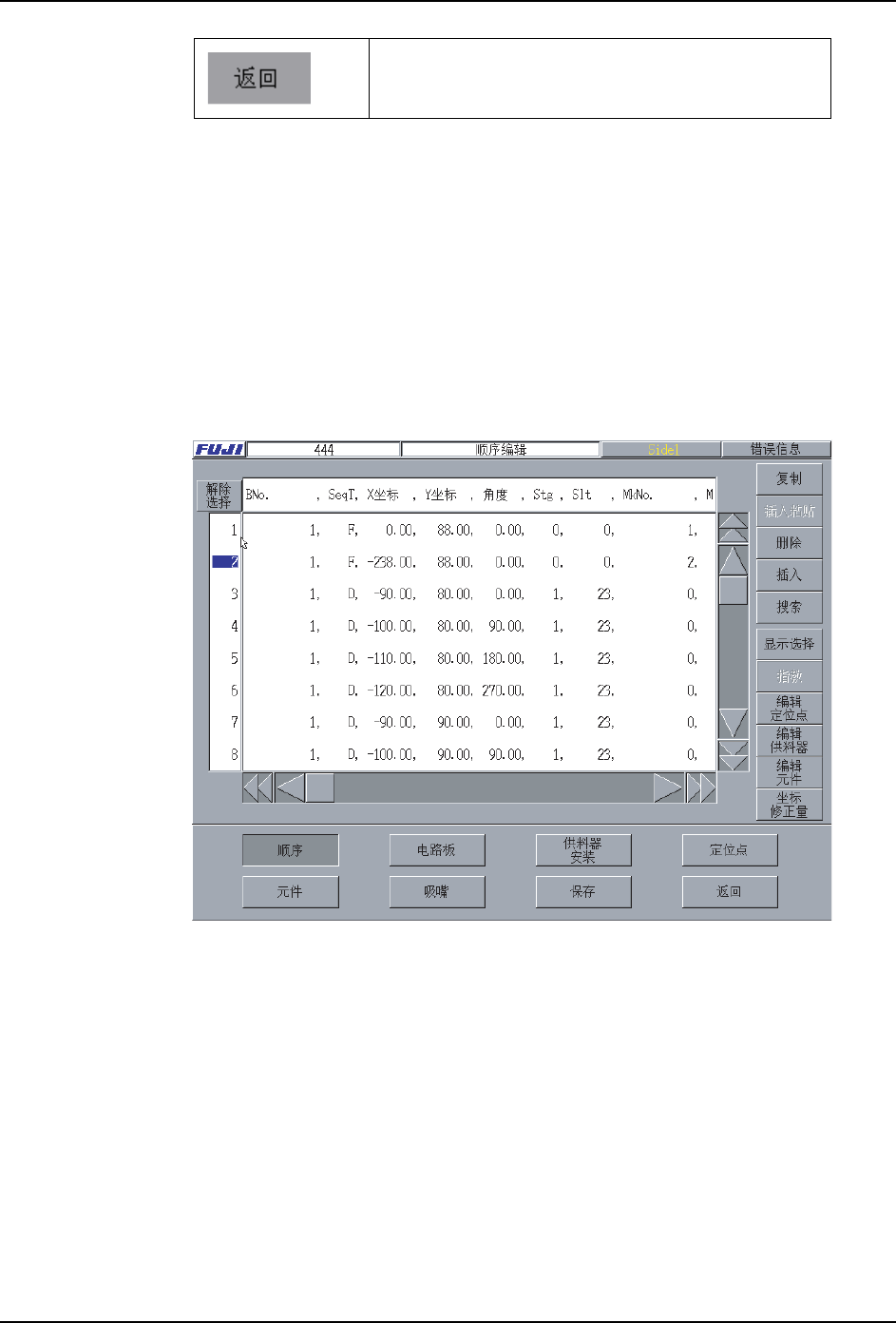 备注 )将选择显示的顺序数据返回到顺序编辑画面 ( 一览