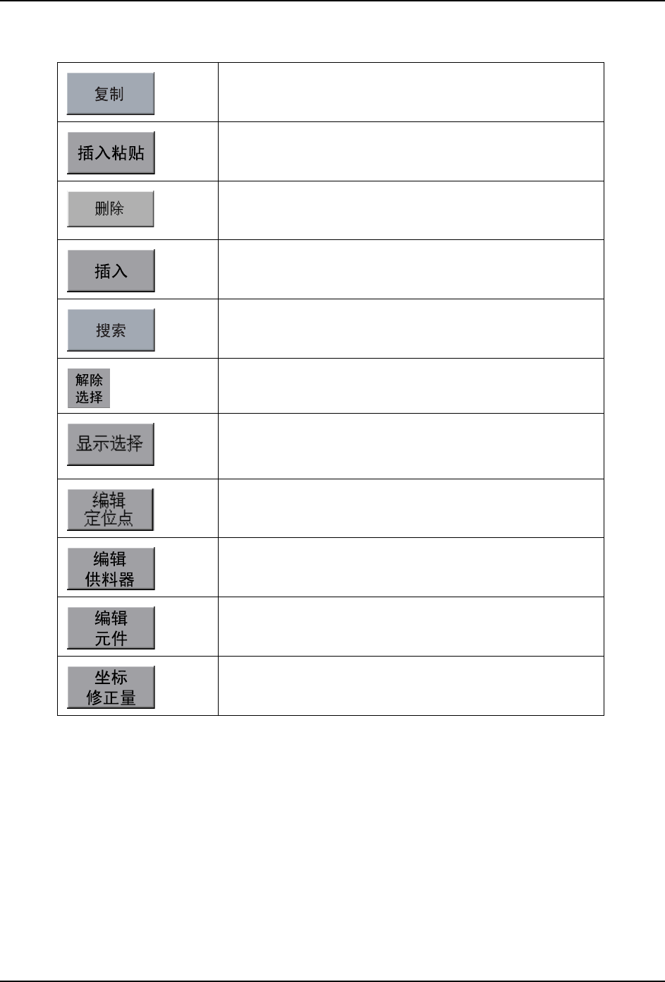 PRG-XPF-1.0S 6. 编辑程序 XPF 编程手册 199 按键说明 解说 在顺序编辑中, 创建或者编辑贴装在电路板上的元件的顺序、 读取基准定位点的顺序等。 此 外,进行子电路板跳过或者供料 器跳过的设定。 备注 )跳过指定行用红色字符显示。 生产中在 [ 顺序编辑 ] 画面上,如 果插入或者删掉顺序时有注意事项。 请参考下面的项目。 · 在生产中进行顺序的插入 / 删除 在 [ 顺序编辑 ] 画面,可以进行下面的操作。 · …