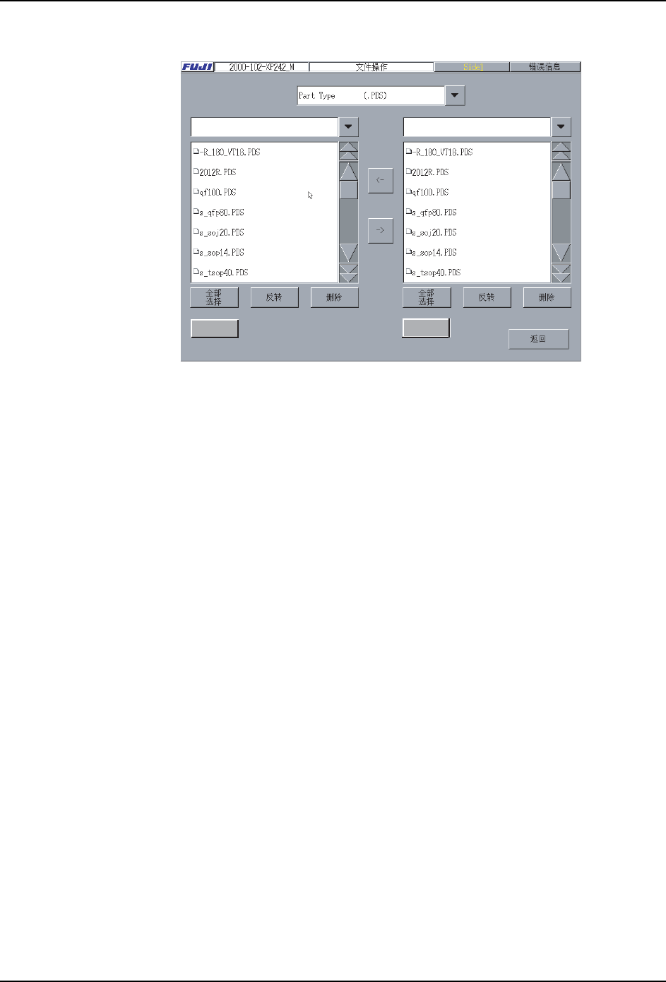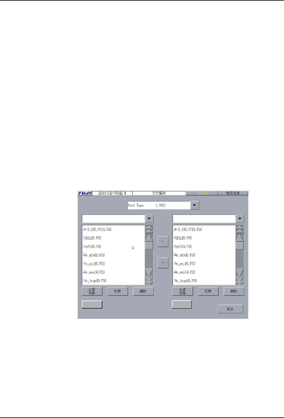 6. 编辑程序 PRG-XPF-1.0S 288 XPF 编程手册 5. 从右面的文件一览表选择复制的 文件。( 可以复数选择 ) 6 . 选 择[→]的 话 , 文 件 被 复 制 到U S B存 储 器 。 备注 )从 USB 存储器复制文件到机器内的方法也同样。请交换读取 USB 存储器和 HDD。 35* 6 +'' ߱ᳳ࣪ ߱ᳳ࣪ ߱ᳳ࣪ +''