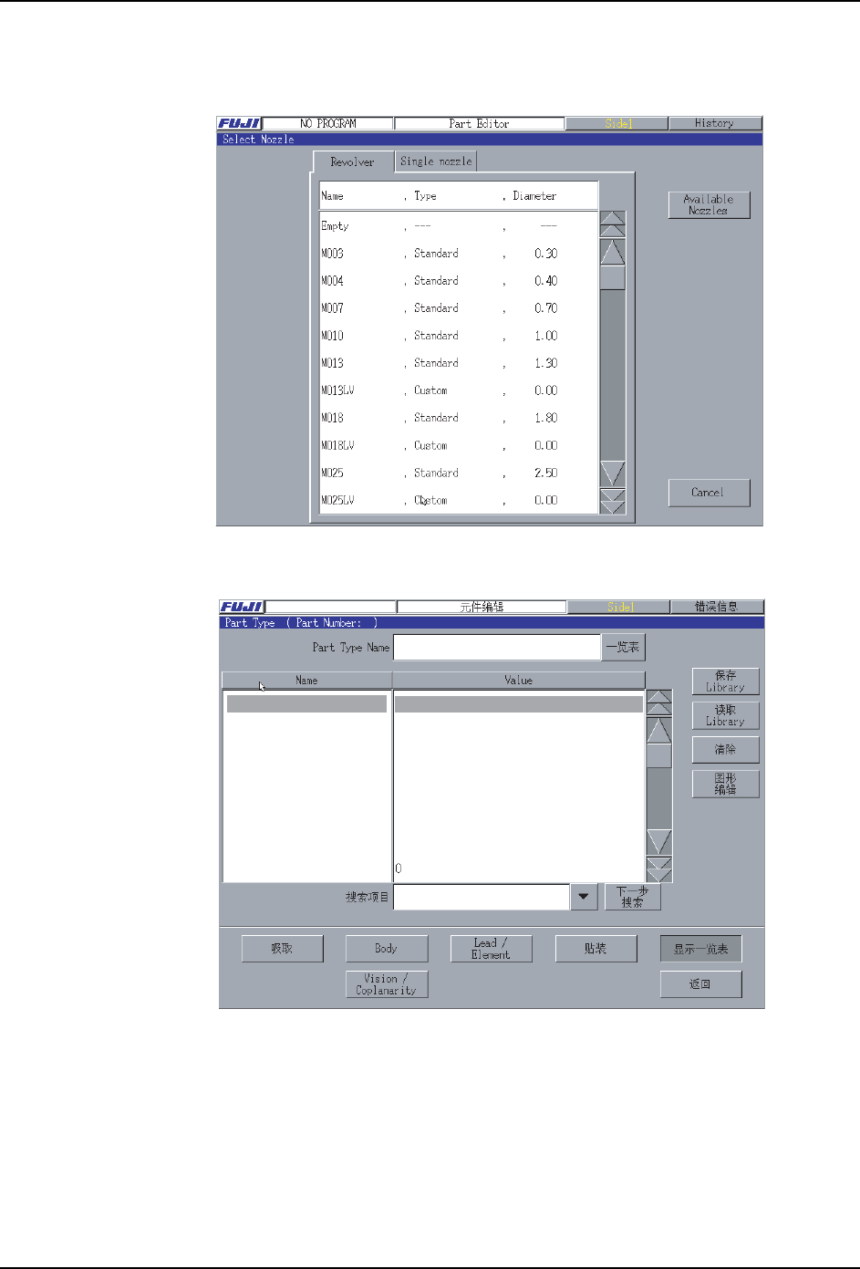 PRG-XPF-1.0S 3. 创建生产程序例子 XPF 编程手册 53 8. 显示 [ 吸嘴选择 ] 画面。选择 [ 单吸嘴头 ] 标签页,请选择下面的吸嘴。 ·Nozzle Name:S100(Diameter: 10 .0) 9. 选择吸嘴的话,如下 在 「No zzle Name」中显示 出吸嘴名。 备注 )在 「Nozzle Name」 中指定使用的吸嘴时, 有必要指定生产时的吸嘴。 不指定使用的吸 嘴时, 需要设定最小吸嘴尺…