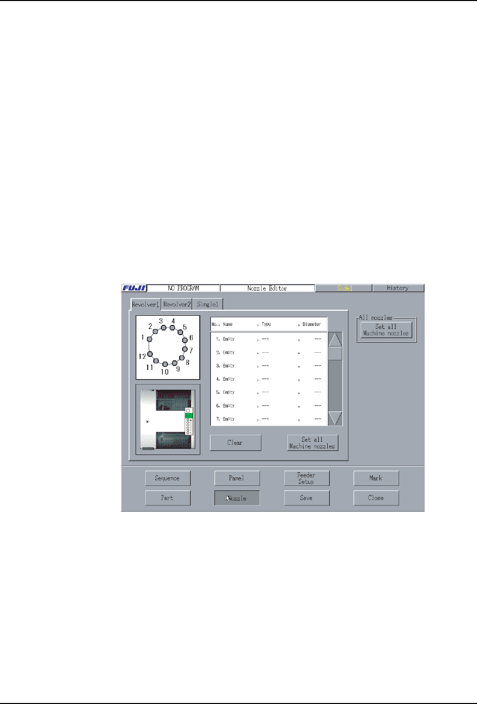 1. 从[主画面]中顺序选择 [ 生产程序 ]、[ 编辑器 ]、[ 吸嘴 ],显示 [ 吸嘴编辑 ] 画面。