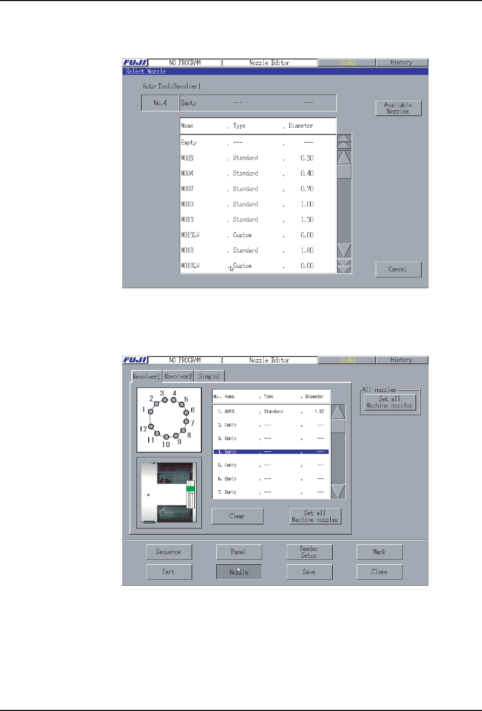 请选择吸嘴号码 「No.1」。显示出如下 [ 吸嘴选择 ] 画面。
