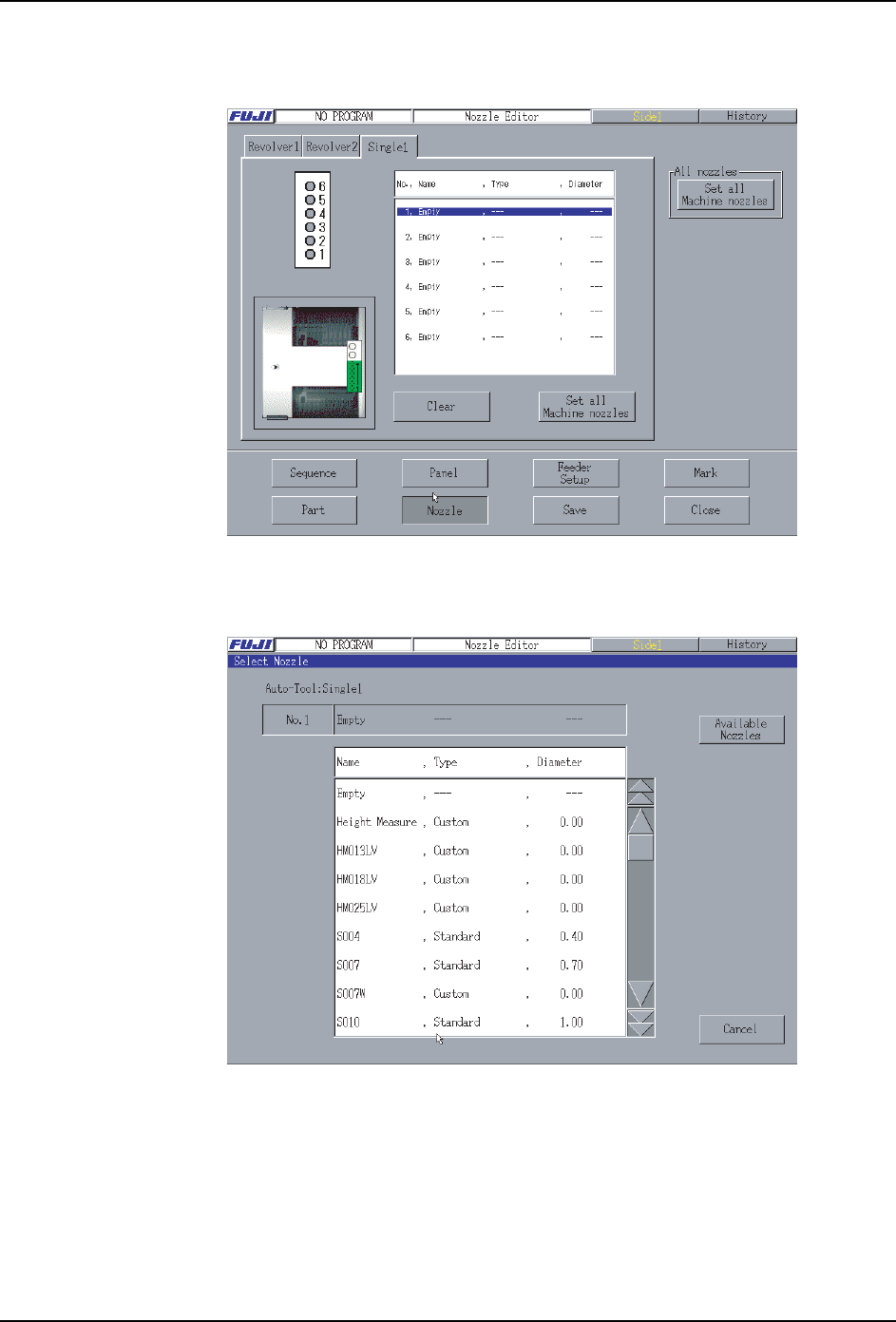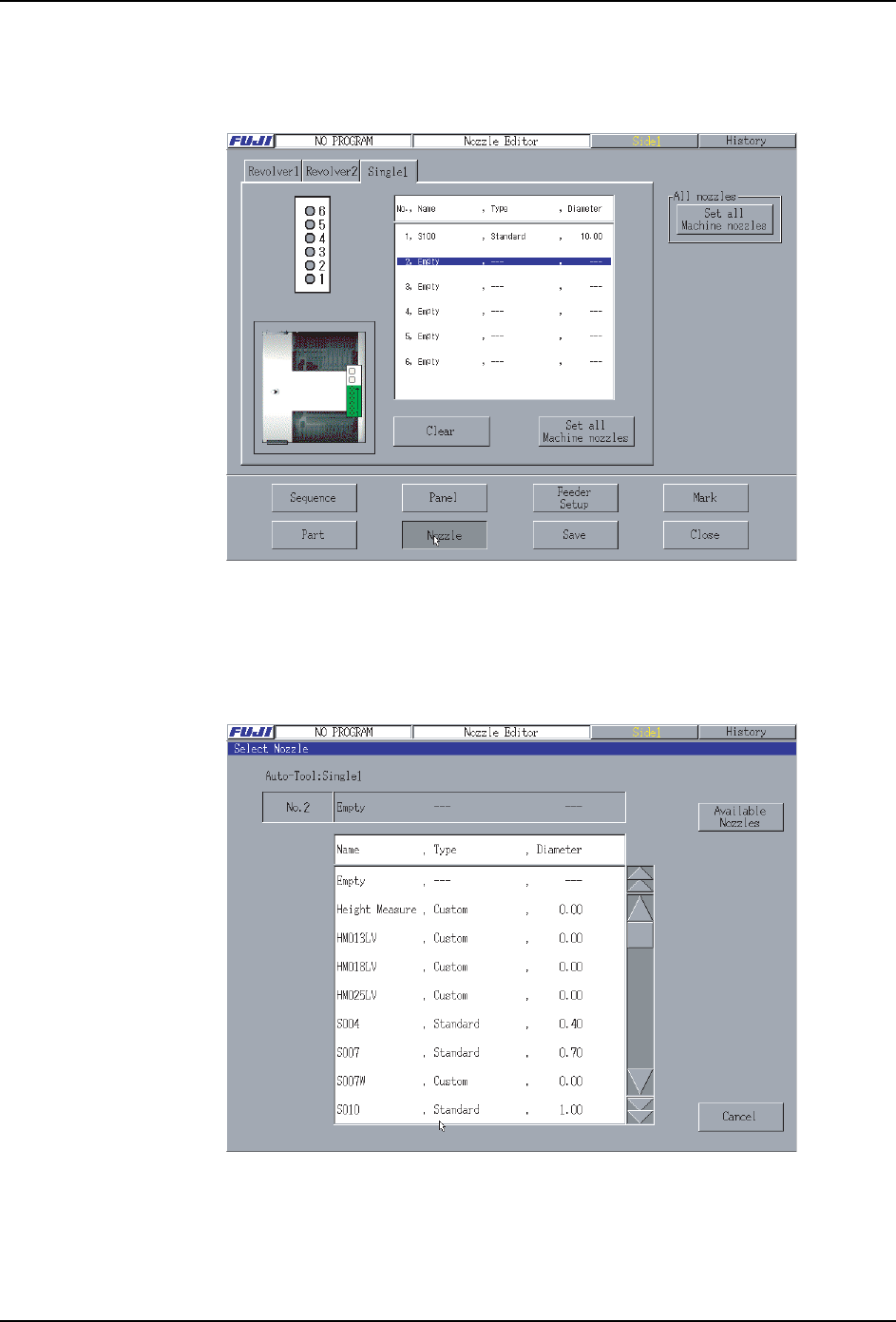 请选择吸嘴号码 「No.1」。显示出如下 [ 吸嘴选择 ] 画面。