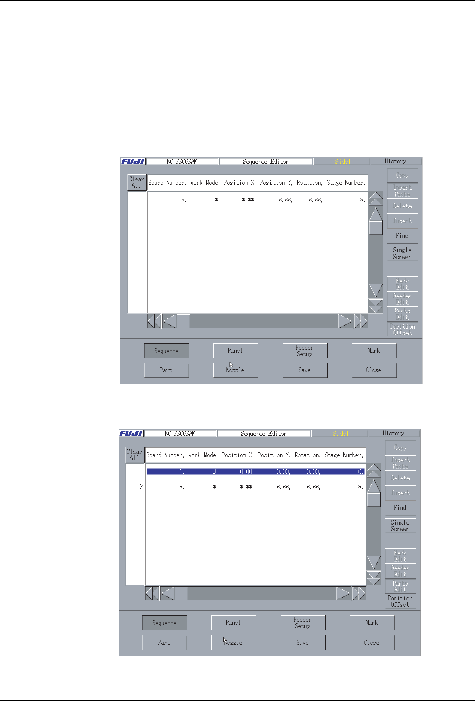 1. 从 [主画面]顺序选择 [ 生产程序 ]、[ 编辑器 ]、[ 顺序 ],显示 [ 顺序编辑 ] 画面。