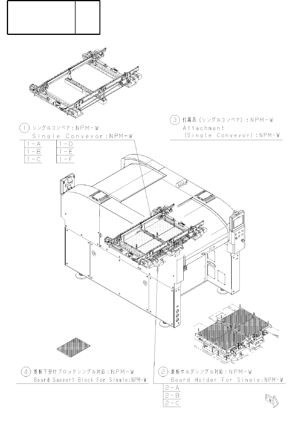 Kit Name Rank Q'ty 番号 Pa rt No . キット名 品番 数量 ランク 頁 Pa ge No. 1 キットリスト KIT LIST 1 1 N610140362AA Single Conveyor:NP M-W シングルコンベア:NPM-W O1 1 2 N610118875AB Board Holder For Single: NPM-W 基板ホルダシングル対応:NP M-W O13 1 3 N610…