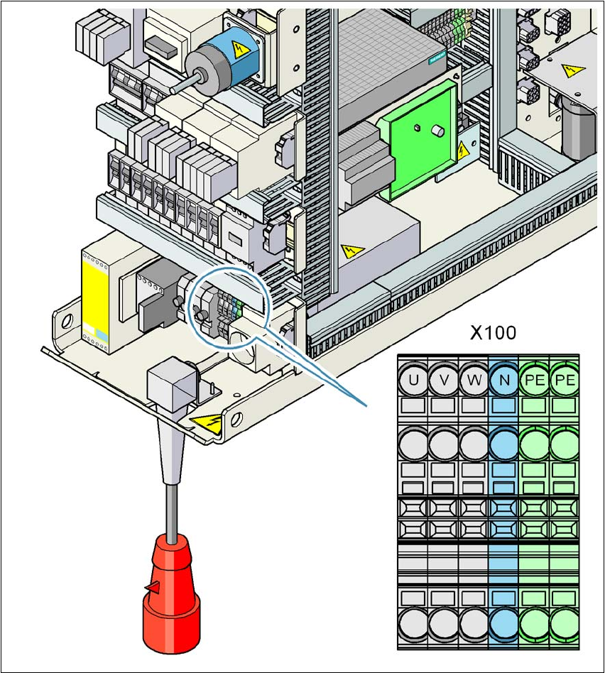 → 只有经过培训的合格人员才能够拆除电源单元上的盖子,并将贴片机与电源连接。