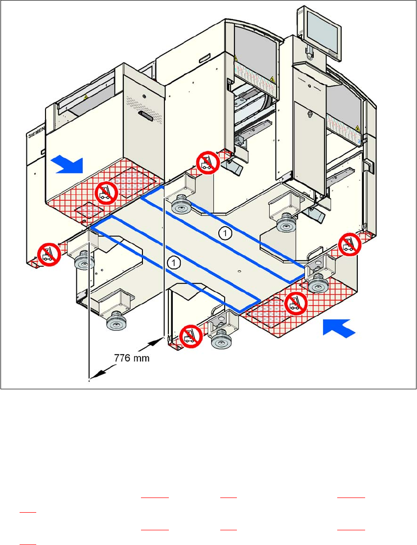 → 使用叉车,将机器向上提升大约 35 cm。