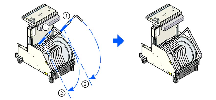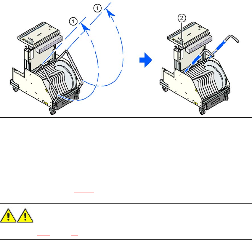 → 使用两个手柄向上推动光栅盘 (图 5.10 - 3