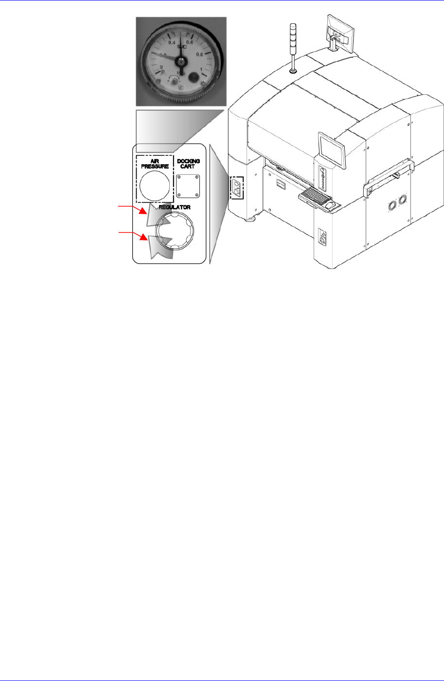 从背面的气压表(AIR PRESSURE) 确认压缩气的供应是否正常 (0.45-0.55Mpa)