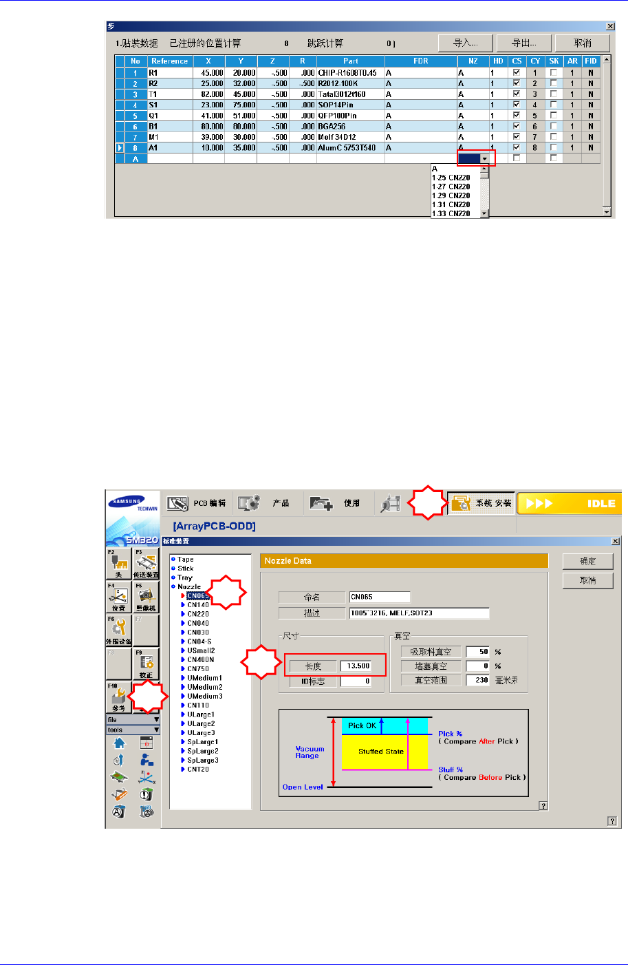 确认在PCB Edit的Part指定的吸嘴 (Nozzle1, Nozzle2)是否实际存在于ANC Hol