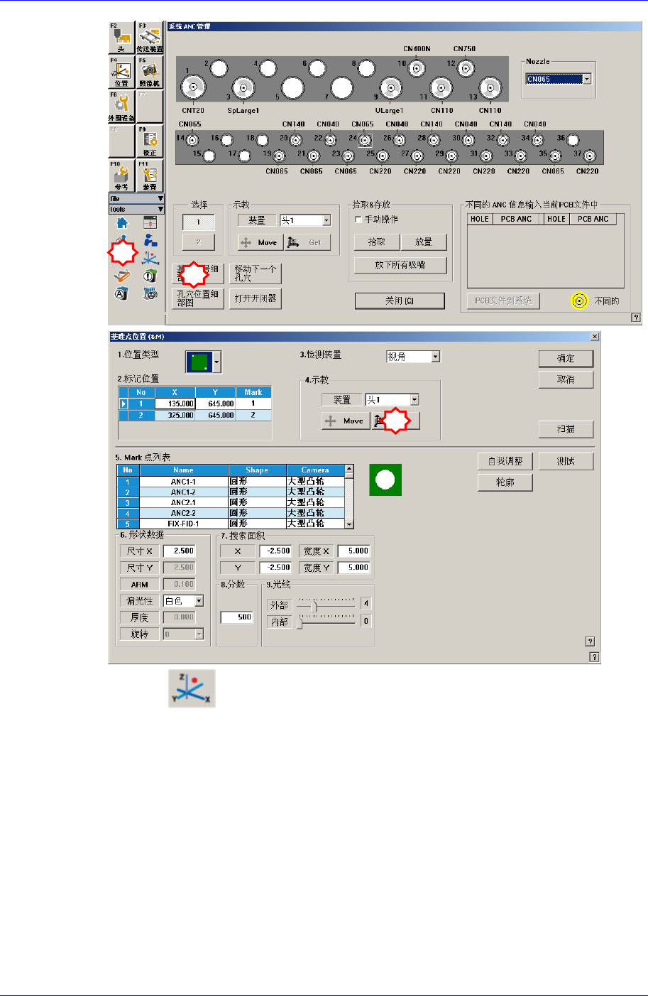 是否选择为“Fid Cam”。还有点击<Move>按钮移动到相应ANC槽位置确认槽的